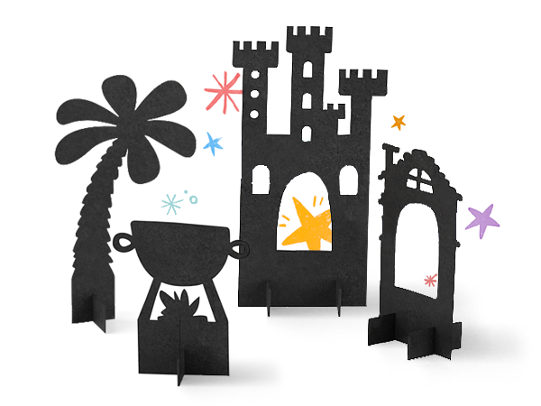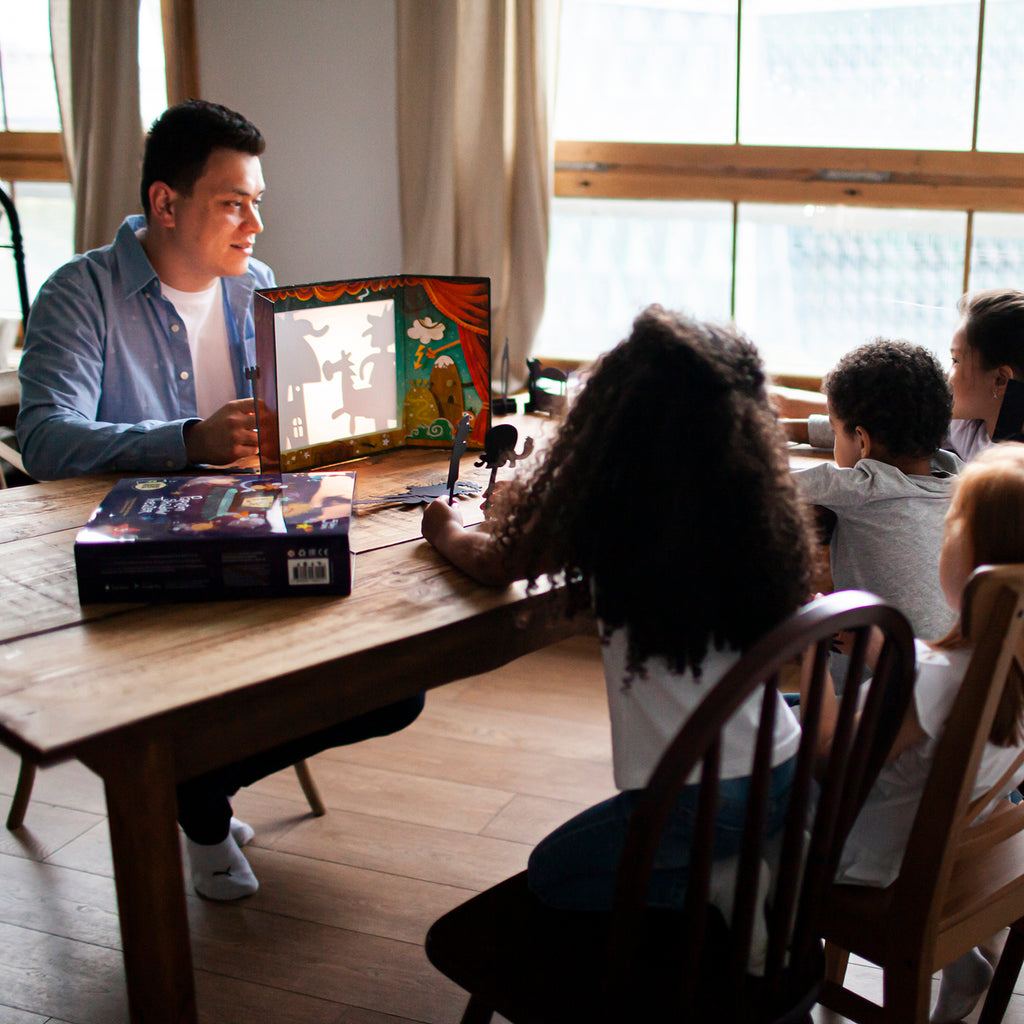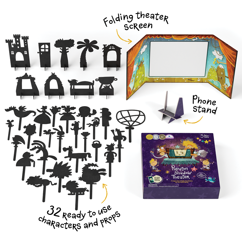 The playset includes everything you need to put on immersive shadow shows for friends and family. Put on a real theatrical show in a matter of seconds. Just open the box, download the app and you are good to go.
